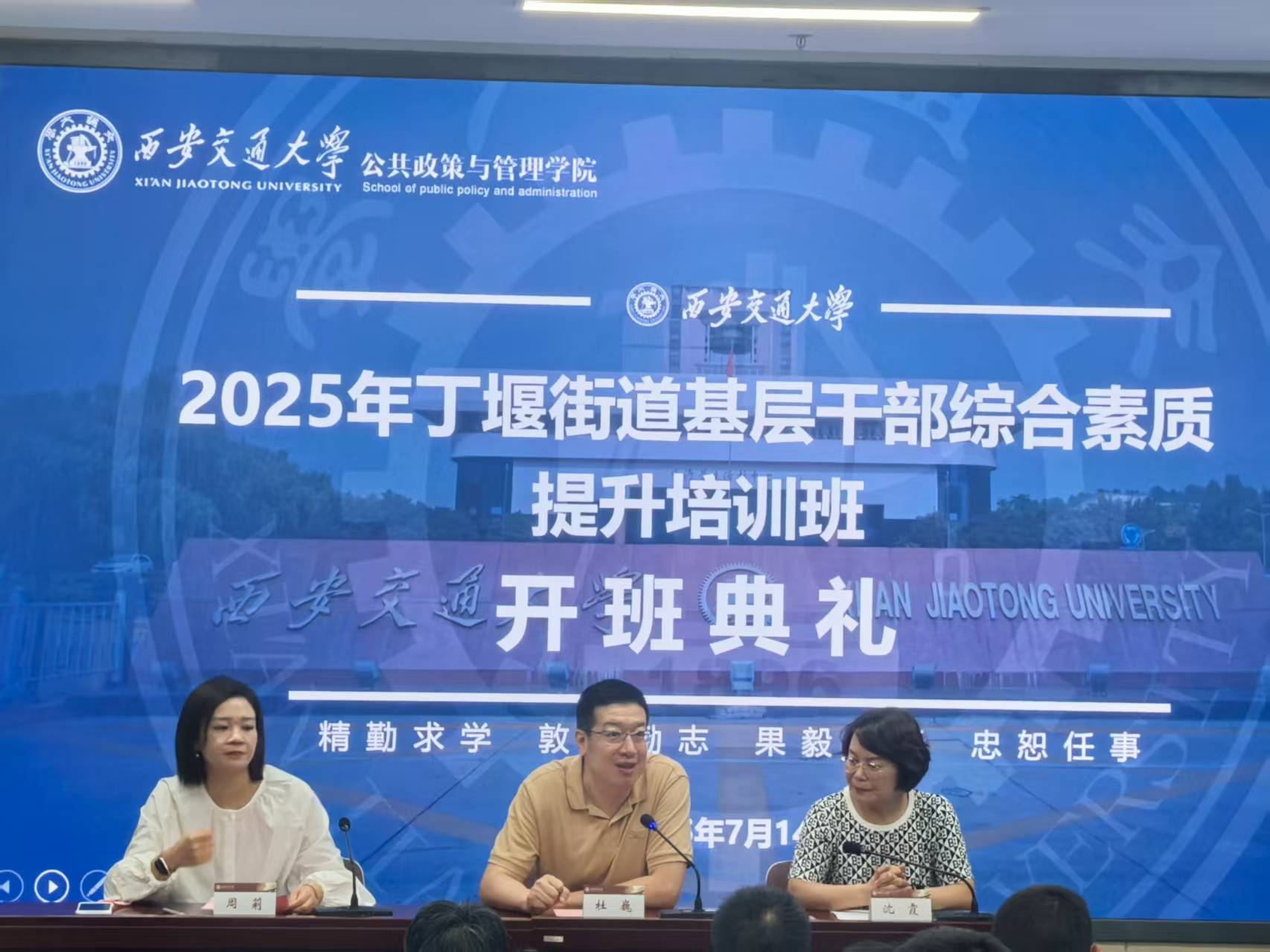 7月14日,由丁堰街道办事处主办、西安交通大学公共政策与管理学院承办的丁堰街道基层干部综合素质提升培训班在西安交通大学兴庆校区顺利开班,西安交通大学公共政策与管理学院副院长杜巍出席了本次开班典礼。