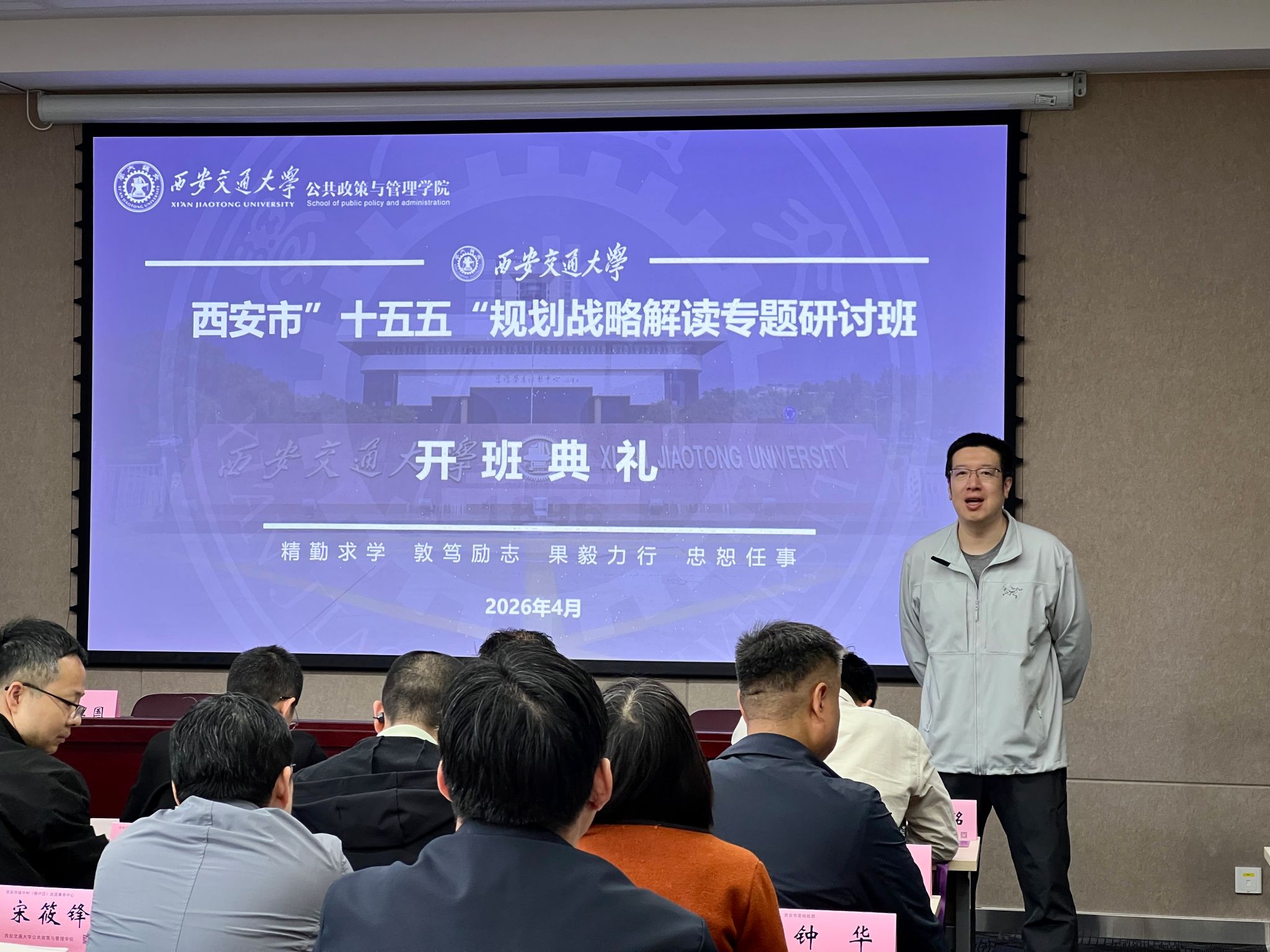 4月14日上午,西安市“十五五”规划战略解读专题研讨班在西安交通大学兴庆校区开班。本次培训由西安交大公共政策与管理学院承办,副院长杜巍出席开班仪式。